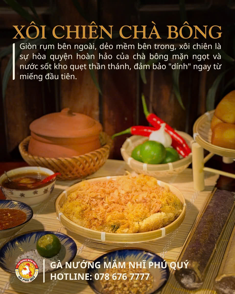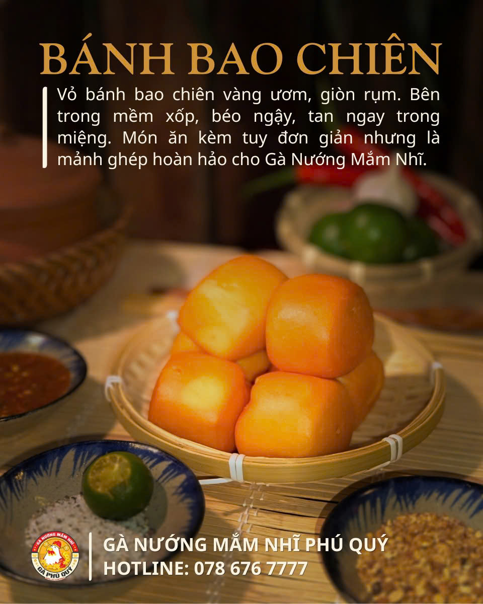 Bên cạnh món Gà Nướng Mắm Nhĩ trứ danh, Hệ Thống Gà Phú Quý còn sở hữu nhiều món ăn kèm ngon không kém cạnh như: Lẩu gà, Cơm Lam Vùng Cao, Xôi Chiên Chà Bông + Kho quẹt, Bánh Bao Chiên.