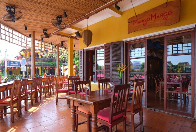 Mango Mango là nhà hàng fusion nằm bên sông Hoài, tọa lạc tại 45 Nguyễn Phúc Chu, P. Minh An, Hội An. Quán có không gian trẻ trung, view sông đẹp mắt và phục vụ nhiều món Việt Nam hiện đại. Trong menu của Mango Mango, ngoài cao lầu hay mì Quảng, bạn cũng có thể tìm thấy món gà nướng được chế biến phong phú. Quán mở cửa từ 08:00 sáng đến 23:00 tối, rất thích hợp để thưởng thức bữa tối cùng bạn bè.